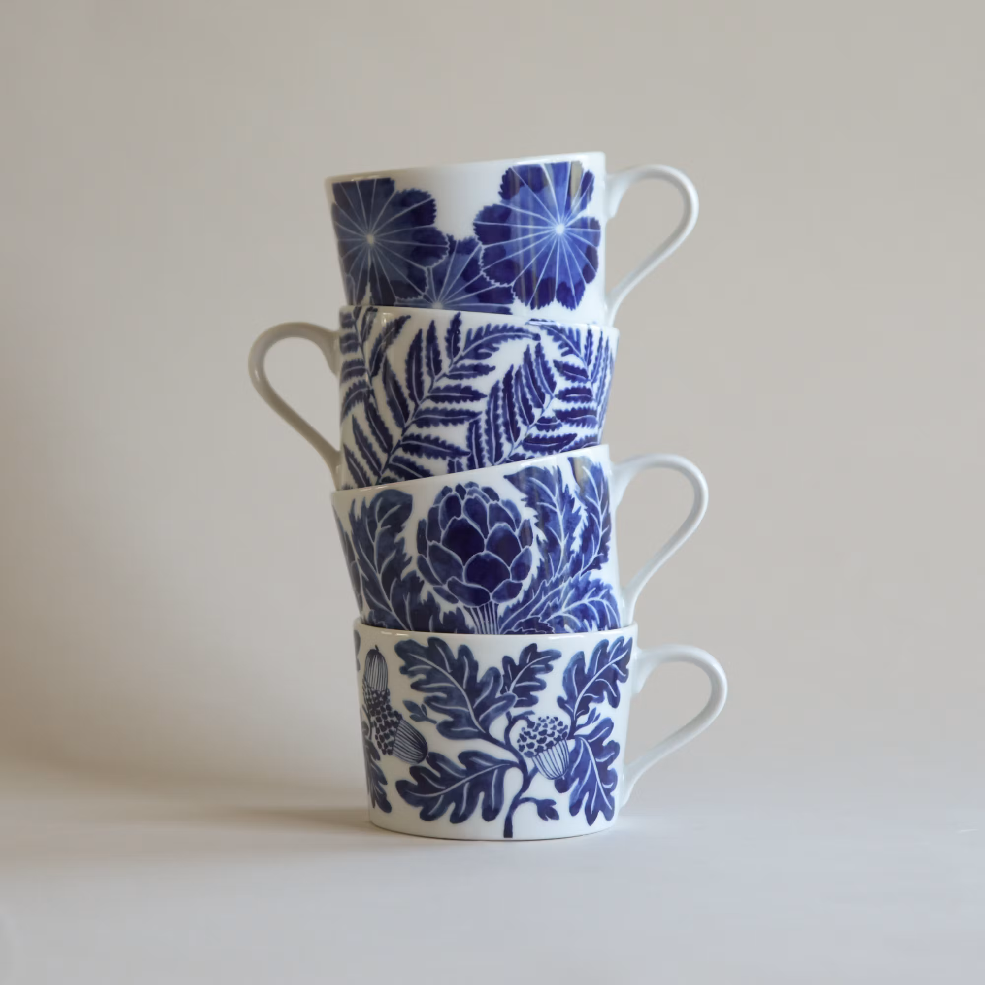 Kategori: 4-p kopp Botanica blå, en av varje, Daggkåpa, Acorn, Fern och Artichoke.