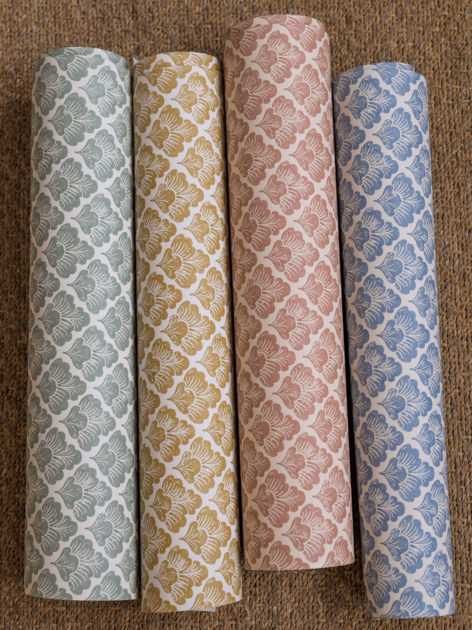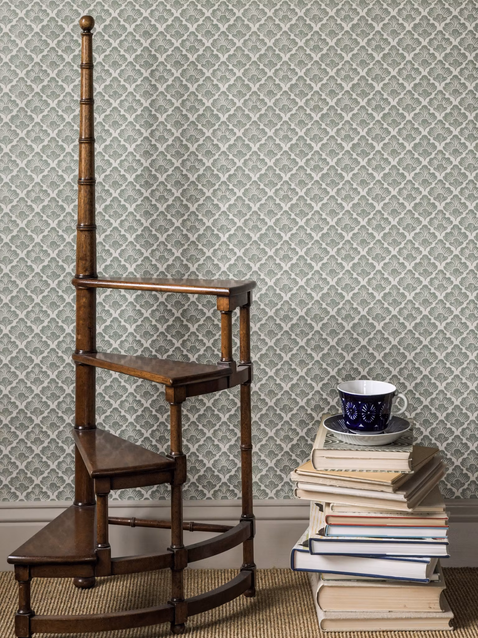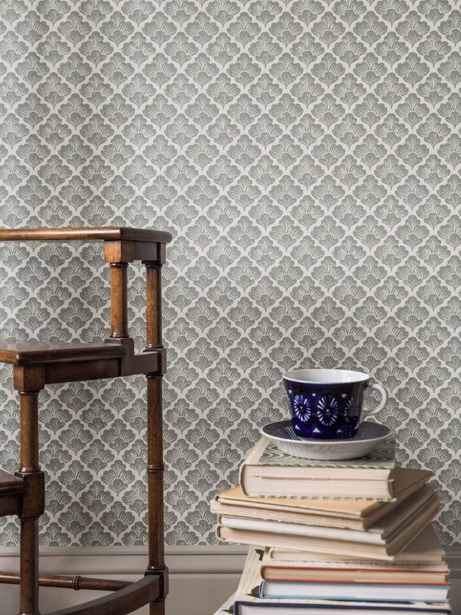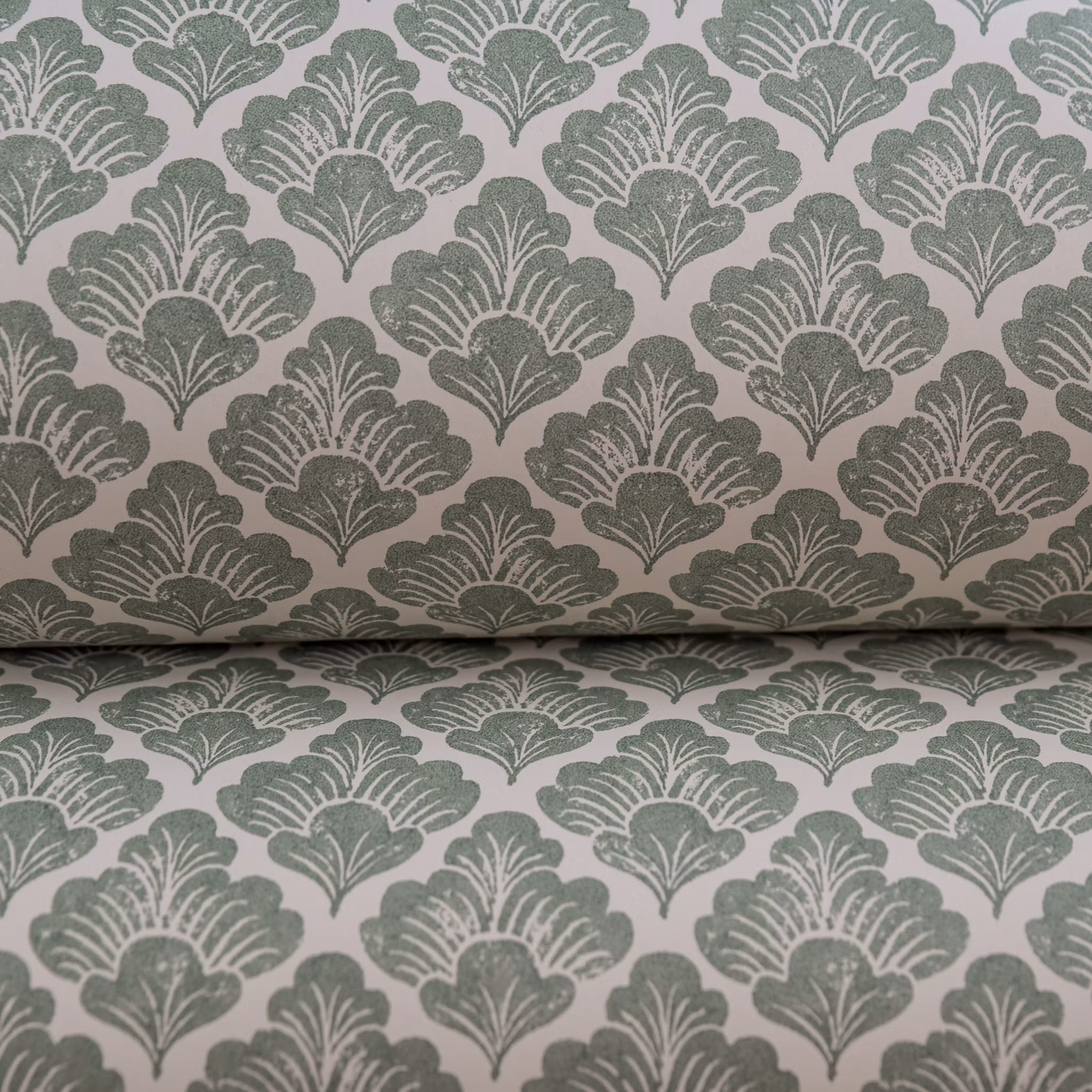 Ett utsökt litet ytmönster med karaktär och variation, från ett original skapat med linoleumtryck.Mönster: LauraFärg: CeladonRapport: 6,4 cm Längd: 10,05 m