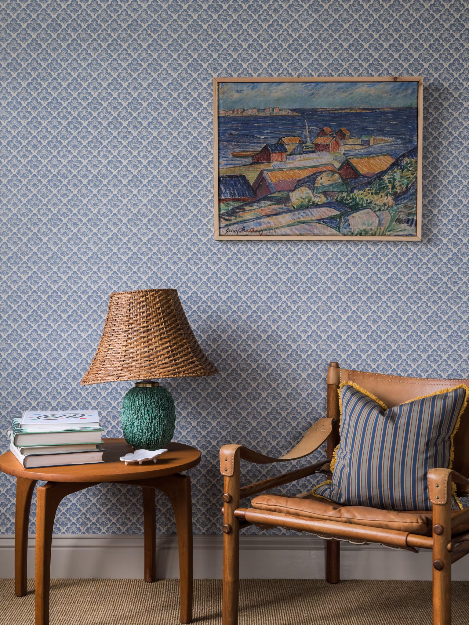 Ett utsökt litet ytmönster med karaktär och variation, från ett original skapat med linoleumtryck.Mönster: LauraFärg: Faded DenimRapport: 6,4 cm Längd: 10,