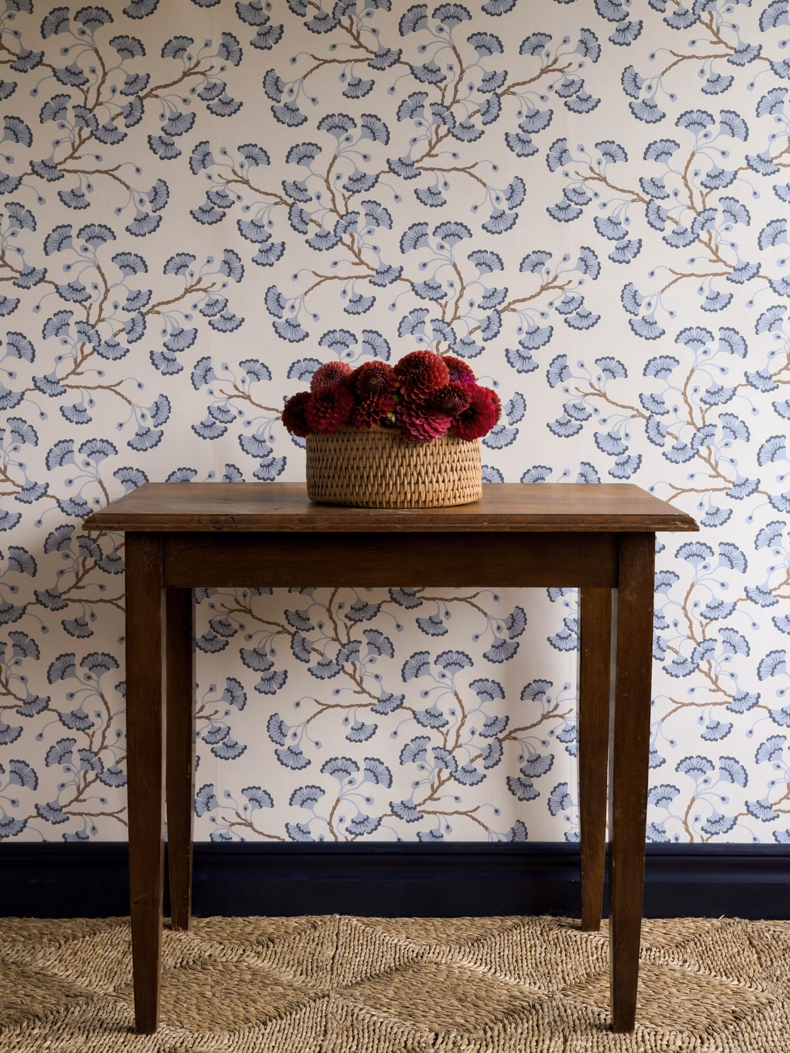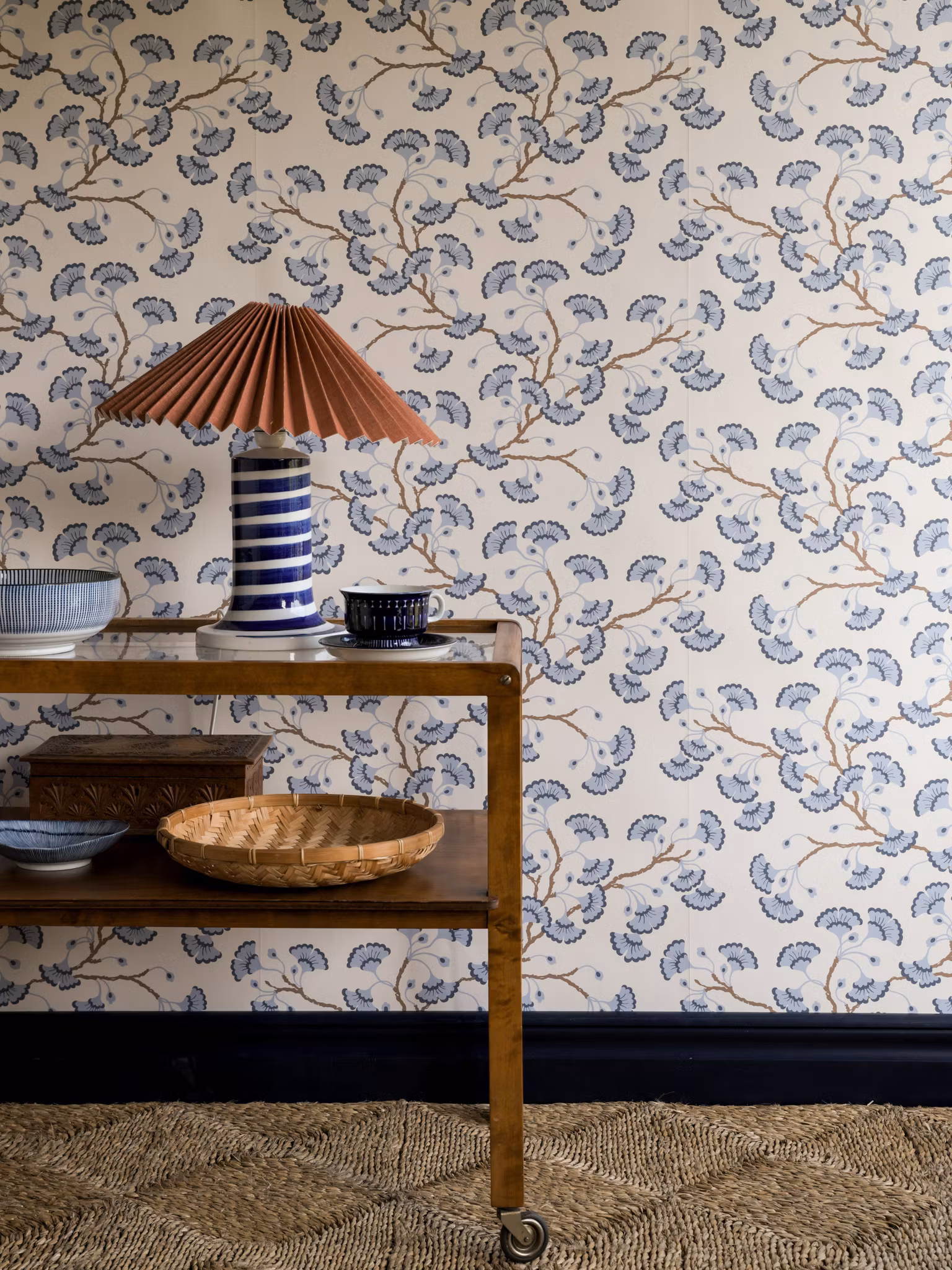 Mönstret hämtar sin inspiration från det tidlösa ginkgobladet - en symbol för styrka, hopp och livslängd. De karakteristiska solfjäderformade bladen breder ut sig i ett rytmiskt och dansant flöde. Det grafiska uttrycket ger mönstret en modern skärpa samtidigt som det för tankarna till klassiska textilmönster. Ginkgo garden förenar naturens mjukhet med dekorativ elegans - lika vackert i en tidlös inredning som i en nutida miljö.