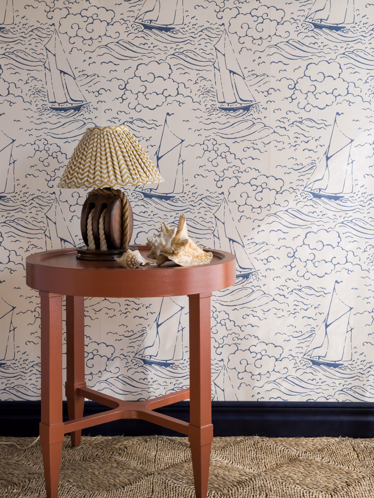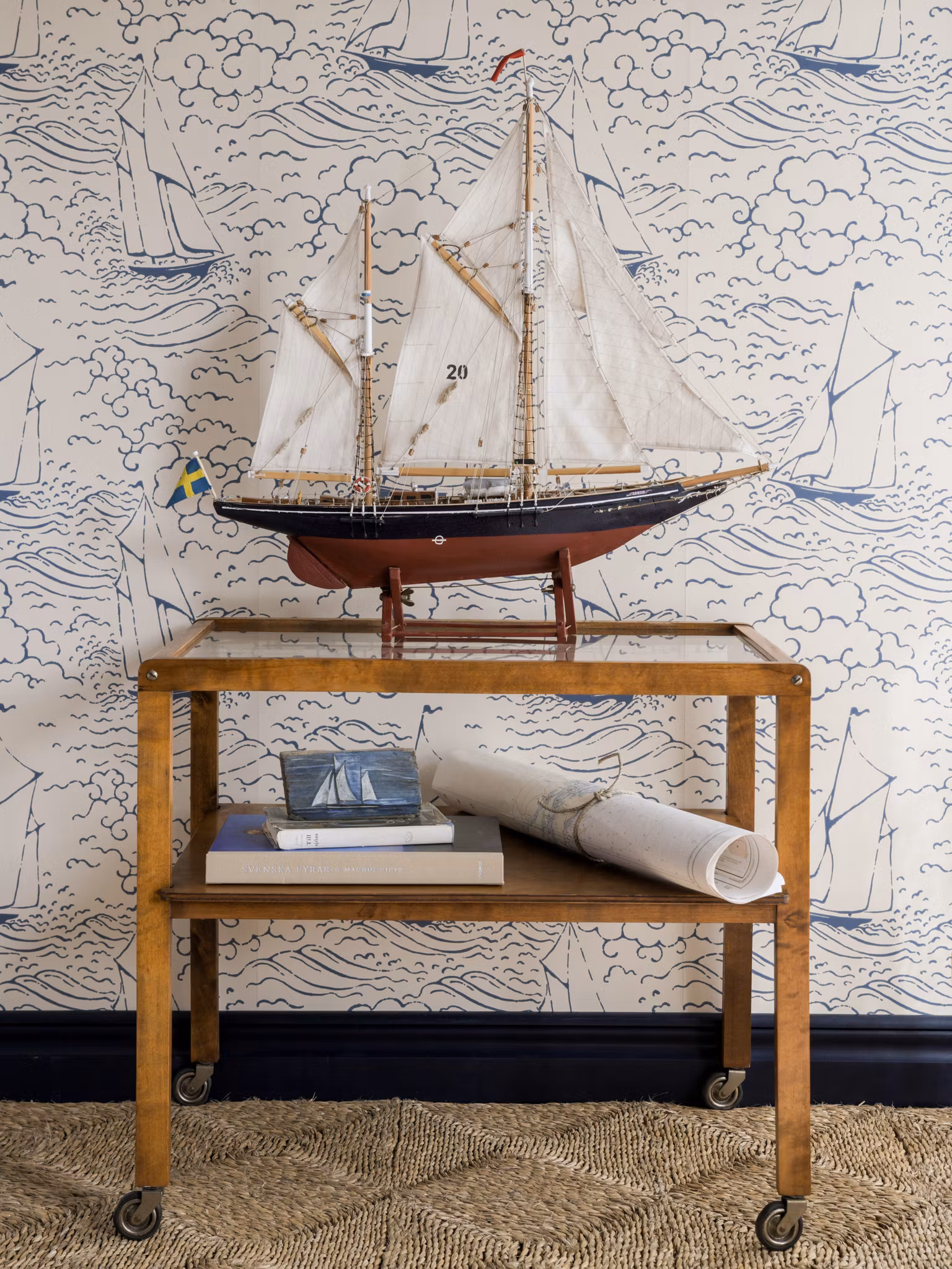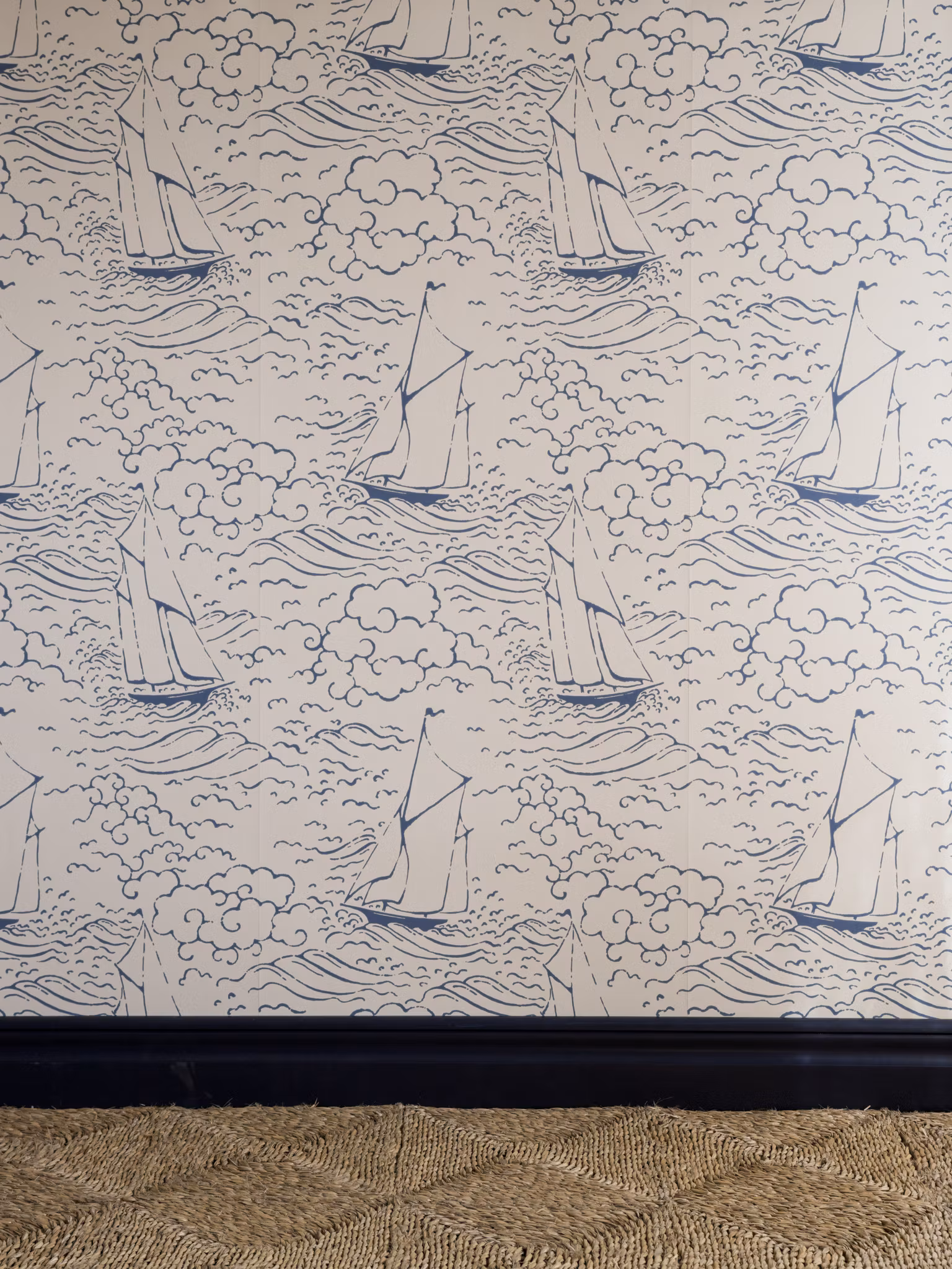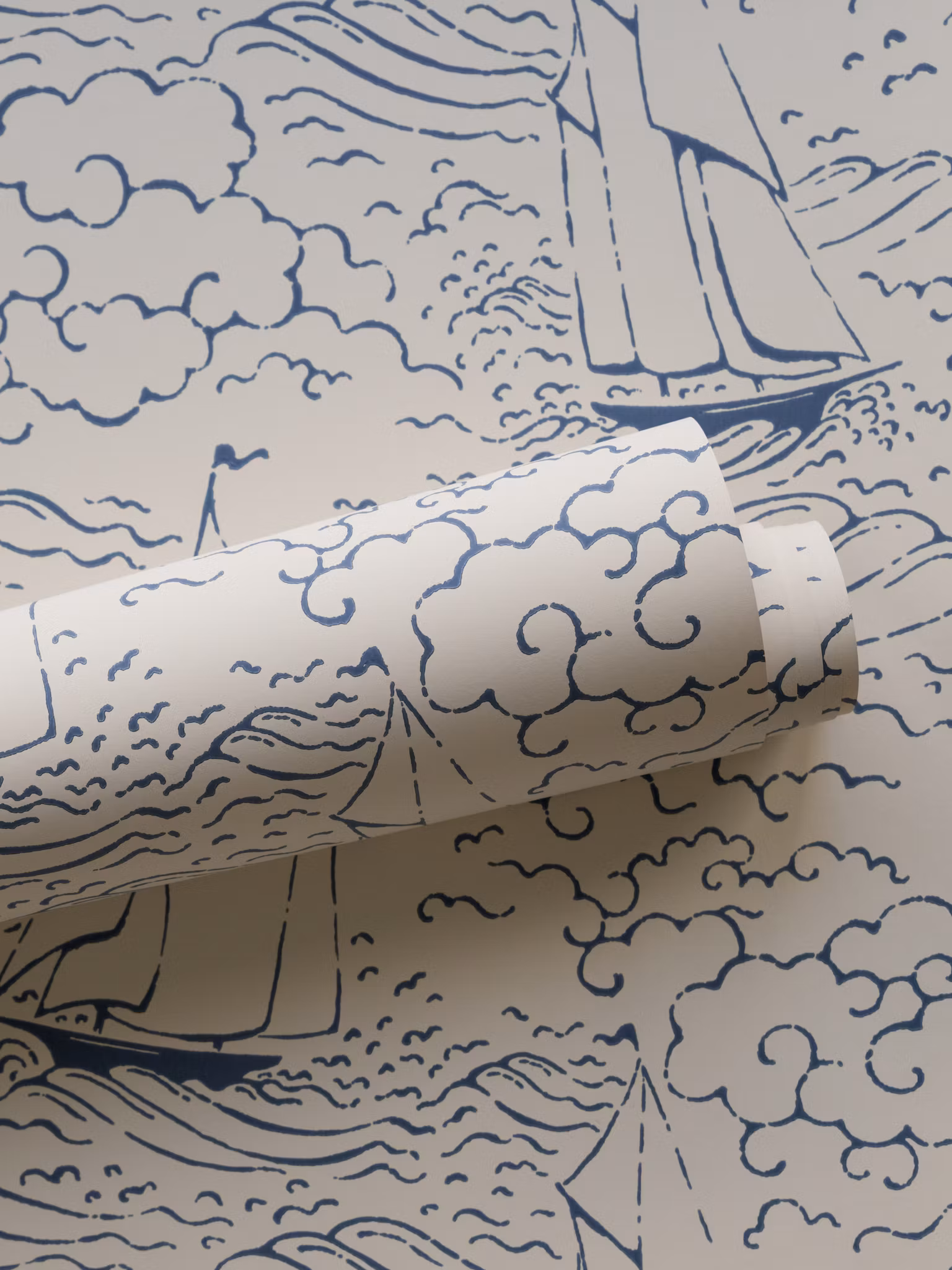 Mönstret är en hyllning till segelskutor som burit människor över havet i århundraden. Likt ett gammalt träsnitt glider båtarna genom vågornas rytm och molnens lätthet. Här möts historia och nutid i ett uttryck som är både poetiskt och grafiskt - lika självklart i en modern inredning som i en miljö präglad av maritim tradition. S/Y Gratia förmedlar känslan av frihet, äventyr och havets eviga lockelse.